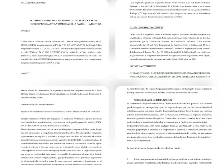 «Frente a la grave situación electoral en la Provincia de Buenos Aires: IVASCOV DENUNCIA EL ATROPELLO A...